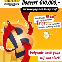 Vanaf volgende week wordt de B'tjes actie gestart!Jumbo René Kromkamp doneert maart liefst € 10.000,- aan verenigingen uit de omgeving.Spaar bij iedere € 10,- aan boodschappen 1 B'tje, stop deze in de koker van CSVC en steun onze club!